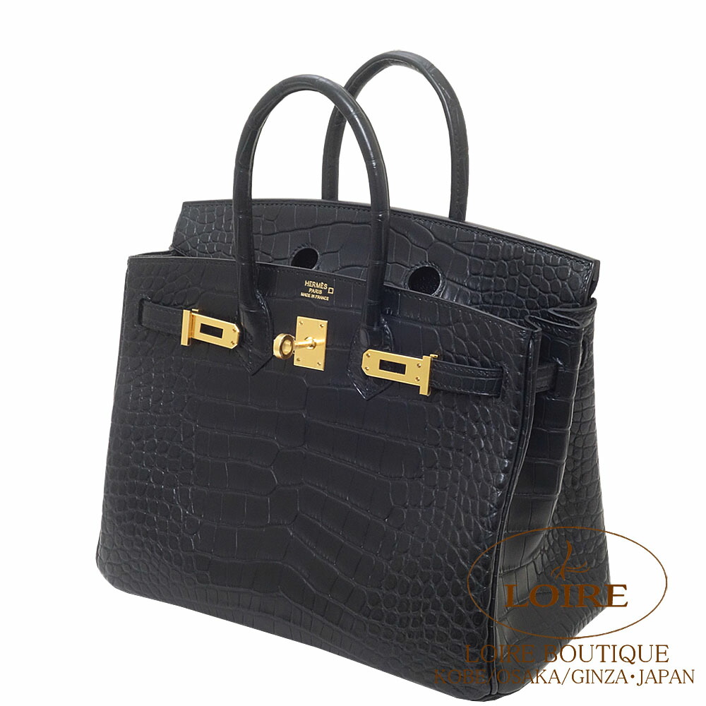 HERMES Birkin 25cm NOIR(89) Alligator Matte Gold hardware